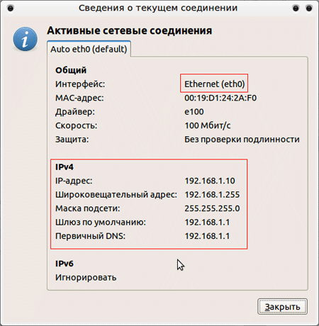 Небольшой гайд с картинками о том, как можно мышкой “натыкать” себе статичный IP в Ubuntu. Подразумевается, что сетевое соединение у вас исправно работает, и что статичный IP у вас есть (в моём случае, это просто любой локальный IP для роутера). Итак, для начала узнаем текущие параметры соединения: