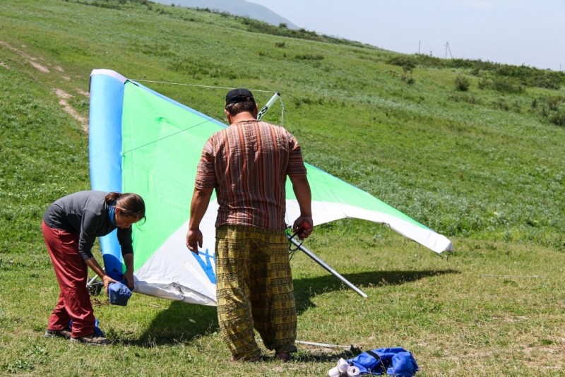 ) и никакого оборудования приобретать не нужно, всё необходимое есть в клубе. Приехав к месту назначения я с “новобранцами” собрал учебный дельтаплан Aeros Target